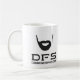 Caneca de café branco de DFS com o logotipo do local.