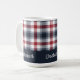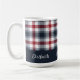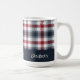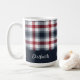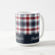 Caneca de café branca e azul-tartan moderna, com nome personalizável para complementar o seu decoro de fazenda. As cores vermelho e azul profundas farão qualquer canto confortável e quente.