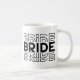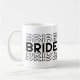 This ceramic coffee mug is shown in a white color with a wedding bride print.