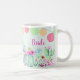 Esta caneca de noiva apresenta lanternas e cacto de aquarela e folhagem suculenta. Você pode personalizar o texto com um nome. Visite a página de coleta em nossa loja para ver a gama de cheios de noivas e produtos de casamento que contêm este design.