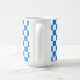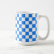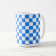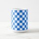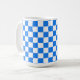 This coffee mug features a classic bright blue and white checkerboard pattern.