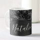 Personalize facilmente este metal escovado preto e uma caneca de café com padrão de brilho suave e glamourosa com o seu próprio nome personalizado.