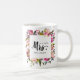 Depois do casamento, mostre sua nova sobrenome com esta engraçada A NOVA SRA. Tipografia MUG com um quadro floral de rosas e folhas cor-de-rosa e roxo Coordenadas para a coleção e acessórios de casamento Brilliant Bloom.