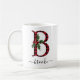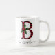 Xadrez de Búfalo preto e vermelho B Monograma Xmas Coffee Mug apresentando uma letra aguda com um padrão de xadrez de búfalos e um elemento de cor de água embutida. O nome modelo sob o monograma B está em uma fonte caligráfica manuscrita suave com flores. Dê uma caneca de Natal personalizada e pensativa como presente de Natal ou gatilho de estoque. Para uma letra de monograma diferente, consulte a seção "Outros produtos desta coleção" abaixo.