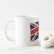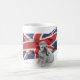 É mostrada uma imagem fotográfica de um buldogue inglês branco que veste um boné do deerstalker e com uma tubulação do calabash (inspirada por Shirlock Holmes) na frente de uma bandeira britânica.