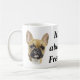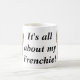 Aproveite a sua bebida favorita, quente, no meu bonito e francês Buldogue, caneca de café. "É tudo sobre o meu francês". Perfeito para amantes de cachorros, e qualquer um que ama a raça dos Buldogues franceses. Trabalho de arte por Sally Lannier/Painted Dreams Designs