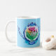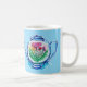 Um design de bule apresenta flores coloridas dentro. As matizes vibrantes de rosa, amarelo e verde se destacam, criando um contraste impressionante com o bule azul.