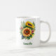 Este item apresenta um buquê com girassóis e folhas verdes e espaço para seu nome.