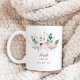 Presente de caneca de café personalizado para noiva com design exclusivo, apresentando caligrafia elegante clássica e buquê floral de casamento rústico boho. Personalize com o nome da noiva e a data do casamento para um presente único de chá de panela/festa para a futura noiva.