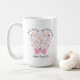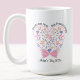 Eleve o seu presente do Dia das Mães com esta linda caneca de café floral projetada especificamente para a mamãe. Adornada com um buquê floral único em forma de coração amarrado com um laço rosa e acentuado com passarinhos azuis encantadores, esta caneca adicionará um toque de fantasia à rotina matinal da sua mãe. O que torna esta caneca única são as três áreas de texto personalizáveis que permitem que você a personalize com sentimentos como “Melhor Mãe do Mundo”, “Melhores Amigas Para Sempre” e “Dia das Mães”, juntamente com o ano atual. Crie um presente significativo para expressar seu amor e apreço por sua mãe.