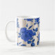 Caneca De Café Buquês azuis de rosas sobre fundo listrado