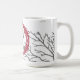 Vintage Deer em um quadro vitoriano vermelho, rodeado por galhos nuos e delicados flocos de neve fazem uma caneca cerâmica serena e bela época de Natal ou inverno.
