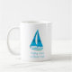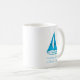 Esta caneca apresenta um veleiro azul-aquarela brilhante sobre fundo branco. O veleiro tem um roteiro abaixo dele que diz "Navegando para dias melhores." A mensagem pode ser personalizada alterando-a na caixa modelo.