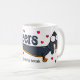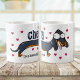 O presente perfeito para o amante do cachorro em sua vida esta caneca tem uma imagem de desenho animado de um cachorro de salsicha e as palavras "Saúde a uma longa pausa de café" cercada por corações