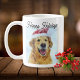 A mais adorável caneca de café com um Ouro estilo aquarela Retriever vestindo um chapéu de Papai Noel - o texto atual lê Felizes Feriados, mas você pode facilmente mudar isso. Perfeito para quem ama cachorros.