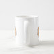 A ilustração original do desenho animado de Destei de um cão da raça Pembroke Welsh Corgi, de cor vermelha e branca, de casaco. Sob o cão, há também uma área de texto personalizável para um nome ou outro texto personalizado. O cão e o modelo de texto personalizado são colocados em cada lado da caneca.