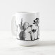 Uma caneca de cacto minimalista com uma ilustração botânica contínua em tinta preta. Inspirada por plantas do deserto e formas naturais, este design envolve a caneca para um visual limpo e moderno.