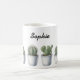Add a touch of natural beauty to your morning routine with our watercolour cactus mug. It features a row of cacti in pots. Perfect for your coffee, or any favourite beverage, this mug adds a unique, charming flair to any kitchen or desk.