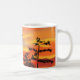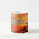 Vejo belos pôrs do sol aqui na Flórida e inspirações para a minha pintura digital de um pôr do sol da Flórida com pelicanos empoleirados em árvores. Laranjas adoráveis, amarelos, vermelhos e púrpuras criam uma cena mágica. Arte exclusiva enfeita esta xícara de café.