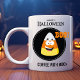 Brilhe suas festividades de Halloween com esta caneca de Halloween personalizável que apresenta uma ilustração de um milho doce sorridente. Esta design é ainda mais aperfeiçoada pela tipografia decorativa da escrita que lê, "Feliz Halloween", e texto personalizável que diz, "Café com Boos." Adicione um nome ou modifique o texto existente para criar um presente único para os bebedores de café que gostam de adicionar algo extra à sua bebida favorita. Perfeito para amantes de café irlandeses e torcedores de Halloween, esta caneca traz um toque lúdico e festivo a qualquer celebração do Halloween.