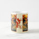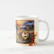 Mug apresentando uma pintura colorida de arte de um galo e galinha com uma fazenda.