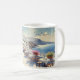 Presente perfeito para o amante de viagem e café. A pintura a aquarela retrata o charme tranquilo e idílico de um compro de café a céu aberto em Santorini. O espaço apresenta paredes brancas com sotaques azuis e aberturas arqueadas que enquadram visões impressionantes do espumante Mar Egeu. As mesas de madeira com cadeiras mais velhas estão espalhadas por toda parte, cada uma enfeitada com vasos de flores vibrantes da bougainvillea. Um contador de pedra natural exibe um tradicional pote de café grego, pastéis e uma máquina de café expresso. À superfície, uma pergola de madeira enrolada com cipós esmagadoras proporciona uma sombra parcial, criando luz solar aplicada no piso rochoso. Os Patrões sentam-se com lealdade, tomando café e ou olhando para o mar ou engajando-se em conversas silenciosas. As icônicas cores branca e azul de Santorini se harmonizam lindamente com a beleza natural da paisagem ao redor.