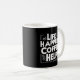 Comece seu dia com humor e estilo! Este design tipográfico ousado apresenta a citação "A vida acontece, o café ajuda" em um fundo preto elegante. Perfeito para amantes de café, combina vibrações divertidas com o estilo moderno. Uma ideia engraçada e doida de café e uma caneca engraçada engraçada deve ter!
