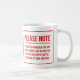 Caneca engraçada para um amante do café, com uma negação escrita nas letras vermelhas, corajosas que advertem qualquer um falar ao proprietário da caneca antes que tiverem seu café.