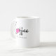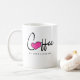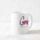 Um design de caneca de café minimalista, mas encantador, com a frase "Café: Minha Língua de Amor" em letra elegante com um pequeno sotaque de café em forma de coração.