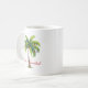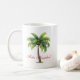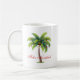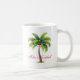 A caneca de café é mostrada em branco com impressão de palmeiras de Natal. O texto diz Feliz Navidad. Personalize esta caneca ou comprar como está.