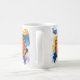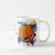 Esta caneca de café cerâmica tem uma imagem de um impressão de arte de uma basquete.