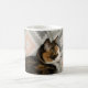 Um gato calico se posou com cobertores em um sofá nesta foto tirada por Richard H. Fay.