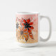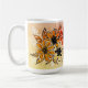 Flores brancas em ouro, amarelo, alaranjado, vermelho, preto e branco, rodeadas de folhas e sotaques, cobrir isso fora dessa caneca. Fundo Dourado e rosa. Também disponível em outros tamanhos e num estilo de tema mais escuro. Veja a nossa compra de opções!