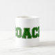 Treinador de Cores Escolares é um design de texto de arte gráfica. As letras colegiais são criadas com duas cores escolares. As letras são texturizadas, biseladas, aparadas e costura. A caneca simplesmente diz: COACH. Esta caneca está disponível em várias cores escolares. A design coordena-se com os produtos das minhas lojas de zazzle intituladas CORES ESCOLARES.