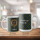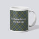 Crachá da crista Campbell rodeado por uma correia e fivela sobre fundo tartano. Texto personalizado de ambos os lados.