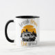 Uma caneca de café com uma van de camping, com a frase "Pausa da Rotina" centrada em torno da imagem. O design sugere uma fuga nômade e aventureira da rotina diária.