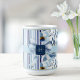 As lindas flores azuis de cor azul de casaco e os arranjos folhagem, adornados com um arco fofo e centrado, são combinados com um padrão de muitas listras azuis neste design. Esta linda caneca faz um presente único e personalizado para qualquer ocasião de doação. Deixe o seu amor brilhar com este presente personalizado adicionando um nome e uma primeira escolha para mãe, avó, amiga, irmã ou esposa como um presente especial e personalizado para o Dia de as mães. Peça o seu hoje, a tempo de Dia de as mães!