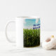 Desenho de lápis colorido de uma mulher que funciona em um campo de milho com céus azuis, caracterizando as citações "transformou seus can'ts em latas e em seus SONHOS em planos!"