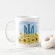 Mão desenhada com girassóis apresentando um trizub ucraniano, este design evoca a bandeira ucraniana.