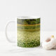 Esta caneca de fotografia de arte é uma celebração das adoráveis colinas e fazendas do norte de Nova Iorque no final do verão. Um campo de flores brancas de trigo mourisco no primeiro plano é seguido por acres de milho florescente quase pronto para a colheita.