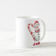 Celebrar a doçura da estação com uma Candy Cane Snowman Coffee Mug! Esta adorável caneca de café de Natal apresenta um bonitinho bonitão segurando uma clássica bengala vermelha e branca, e vestindo um lenço vermelho e branco festivo e chapéu. Personalize-o facilmente com qualquer nome para torná-lo um presente de Natal perfeito, um presente de Natal ou uma forma doce de desfrutar da sua bebida quente favorita.