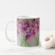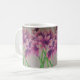Esta caneca é impressa com um design de lírio de aranha rosa desenhado à mão.