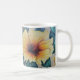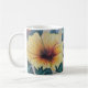 Esta caneca é impressa com um design de hibisco amarelo desenhado à mão.