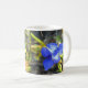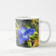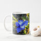 Flores azuis brilhantes e flagrantes, que se dão bem, enfeitam a caneca de cerâmica resistente. Ideia de presente ideal para desfrutar de uma xícara de café ou chá refrescante! Caneca de viagem, caneca de cerveja e dois tamanhos com opções de cores também disponíveis.
