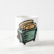 A torradeira humilde é algo que todos temos em nossas cozinhas. Há muitos tipos diferentes de torradeiras e esta design é uma legal de uma torradeira de duas fatias com duas fatias de torrada saindo dela. Esta torradeira parece excelente nesta caneca. Perfeito para si mesmo ou como presente