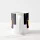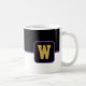 A caneca de café é mostrada aqui com um impressão de estilo de bloco de cores com uma letra de amostra, personalize e altere cores e letra ou comprar como está. Cor Púrpura Preta, Branco Personalize este item ou comprar como está.