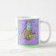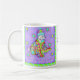 "Eu sou Cozy no meu Quilt" vai fazer pelo seu café matinal ou xícara de chá ou chocolate quente. O texto "Quilt Lover" aparece na seção central, mas pode ser personalizado com o seu nome ou o nome do seu Quilt Guild. Este cão branco está embrulhado numa manta de retalhos multicolorida para se manter quente. Ele está vestindo um tobogã listrado. O fundo é roxo com uma borda verde com listras de turquesa. As estrelas e os pontos suspensos são espalhados aleatoriamente no fundo. Este cão vai conquistá-lo com a sua adorável expressão.