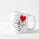 Grande imagem da silhueta de notas e clefs musicais em forma de coração, pequena imagem de um coração vermelho atrás das notas negras. Imagens espelhadas em dois lados da caneca de café. O texto Cantando coração de um lado da caneca, o texto Amor está no ar do outro lado da caneca. Personalizável. Você pode alterar ou excluir tudo. Fique à vontade para usar o botão Personalizar para ajustar o design de acordo com as suas necessidades, não se esqueça de escolher outro estilo da caneca.