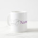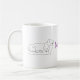 Cão Dachshund Dormindo Desenho linear mínimo, nome personalizado e caneca colorida de fundo.