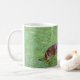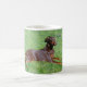 Doberman vermelho que encontra-se na caneca sunbathing da fotografia da grama.